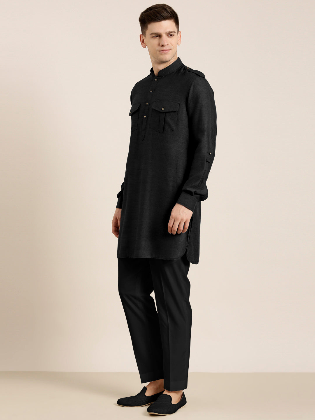Crafted from high-quality black cotton, our Short Pathani radiates elegance and comfort. With its sleek design and impeccable fit, it exudes confidence and style. Perfect for any occasion, this piece from theethnic.co is a must-have for any fashion-forward individual. Elevate your wardrobe with our Short Pathani today.