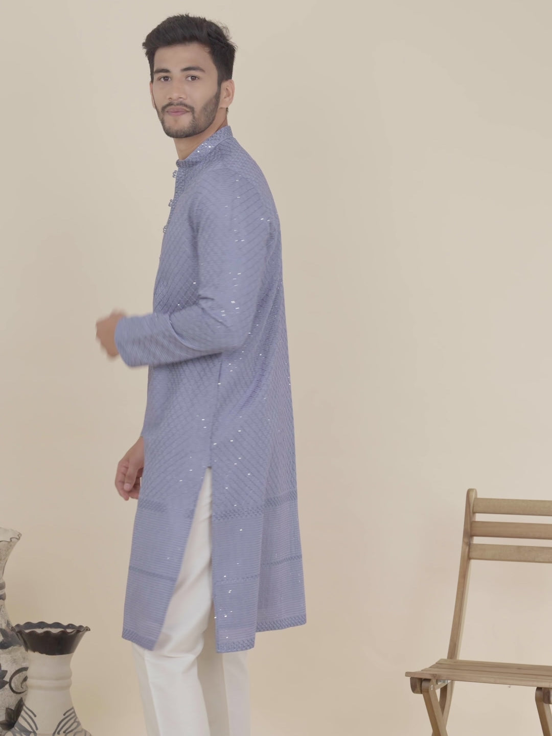 Upgrade your wardrobe with this elegant Blueish Grey Embroidered Kurta Set from theethnic.co. Made with high-quality fabric, this set is perfect for formal occasions. The intricate embroidery adds a touch of sophistication, while the versatile color allows for endless styling options. Experience comfort and style with this must-have kurta set.
