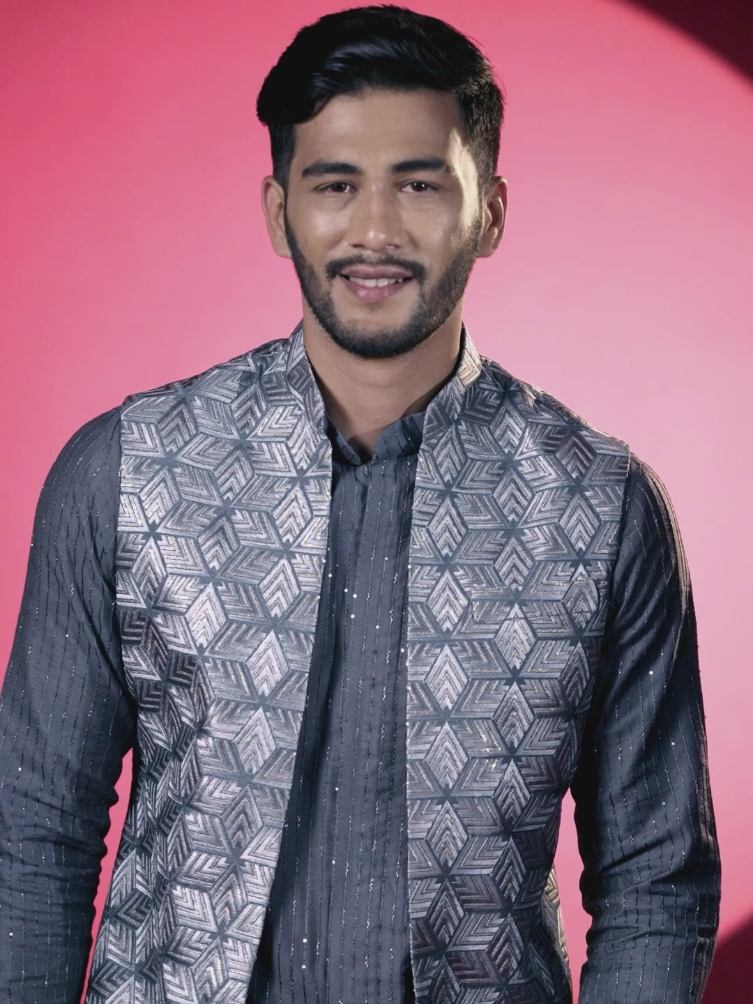 Effortlessly elevate your style with our Grey Embroidered Long Jacket Kurta Set. The intricate embroidery adds a touch of elegance, while the long jacket provides extra coverage and warmth. Stay chic and comfortable in this versatile set.