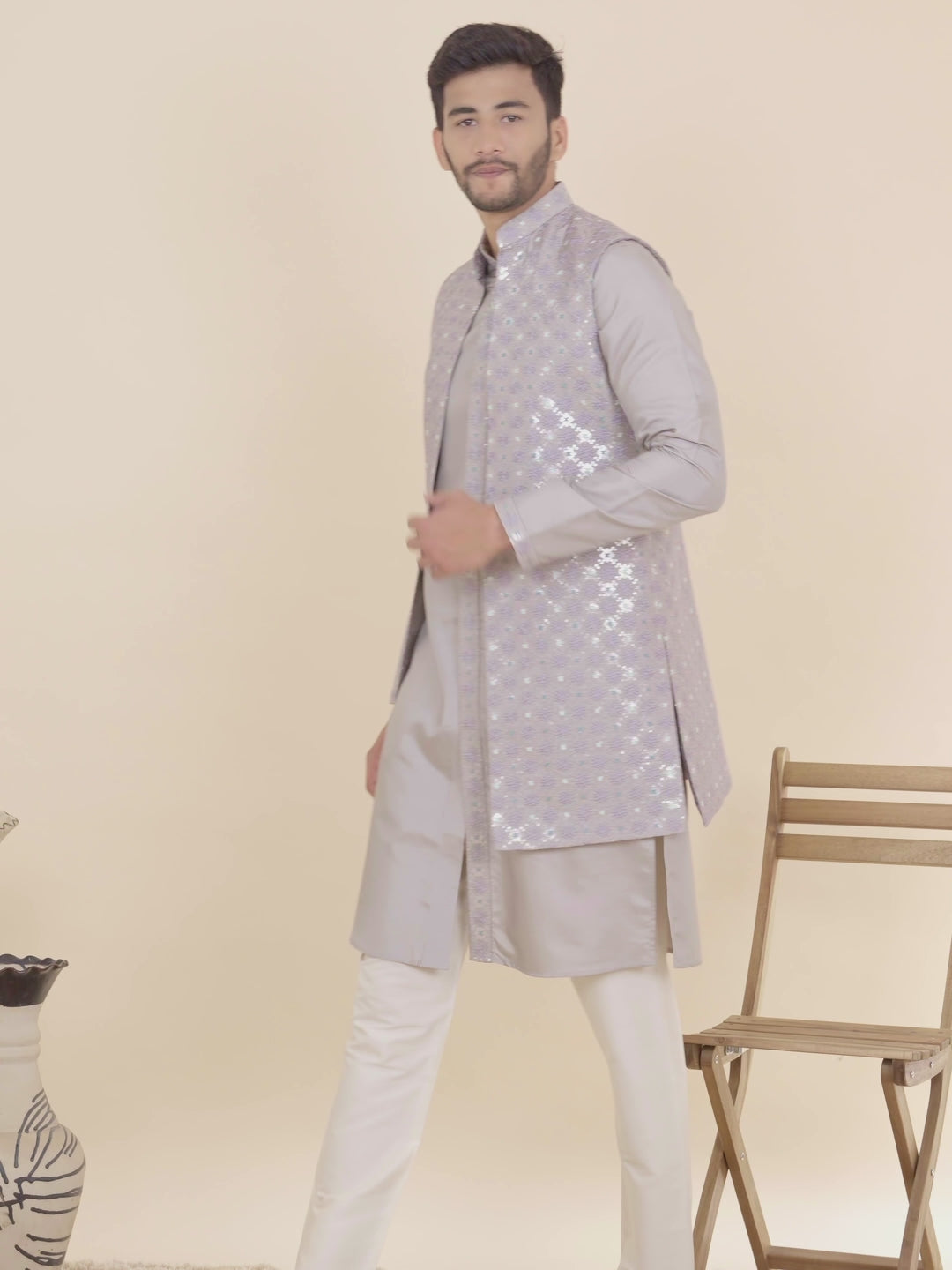 This long jacket kurta set from TheEthnic.Co features intricate lilac embroidery, adding a touch of elegance to your ensemble. Crafted with high-quality materials, this set offers both comfort and style. Elevate your wardrobe with this versatile and timeless piece.