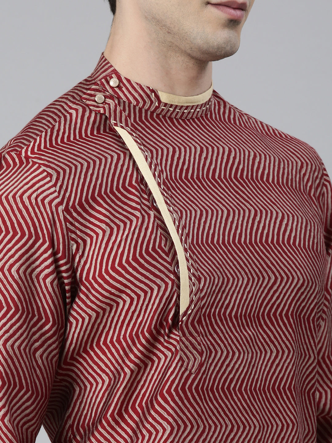 The Maroon Harring Bone Block Printed Kurta Set from the ethnic co is perfect for festive occasions. Crafted with utmost comfort and style, this elegant and sophisticated set is ideal for weddings and special events. Its block printing and harringbone design make it a truly trendy and stylish choice.